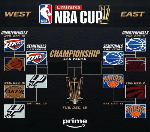 四支球队将会师赌城拉斯维加斯,究竟谁能拿下第三座 NBA 季中赛冠军奖杯,拿下 50 万美元奖金呢?我们拭目以待。
